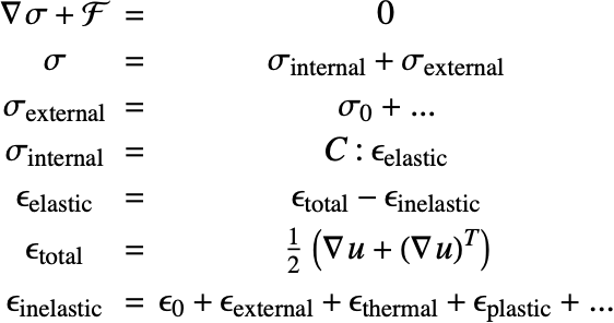 Modeling solid mechanics with partial differential equations (PDEs) is not the only way to model solid mechanics. Other techniques include setting up ordinary differential equations (ODEs). This approach is followed by the Wolfram System Modeler. Roughly speaking, the system modeler approach is more suitable for large systems of solid bodies interacting, while the partial differential equation approach is more suitable for a fine-grained analysis of a specific body. In some cases, it is beneficial to use a combination of the two approaches.