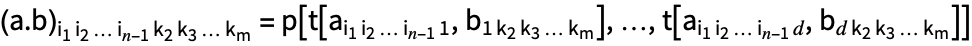 is the common last dimension of a and first dimension of b. Think of p as Plus and t as Times.