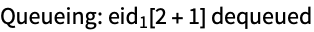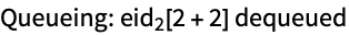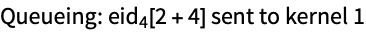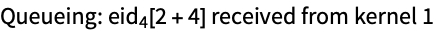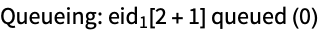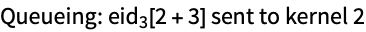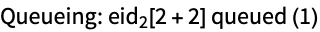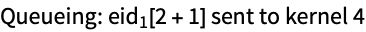 Queue the evaluation 1+1 for processing on a remote kernel. Note that Queue has the attribute HoldAll to prevent evaluation of the expression before queuing. The value returned by Queue is the evaluation ID (eid) of the queued process.