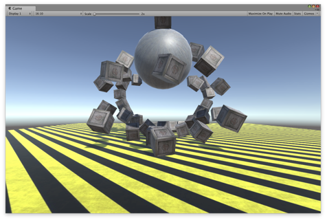 In this first project, we create a simple simulation game that shows many of the principles of working with scenes, game objects, components, prefabs and physics.