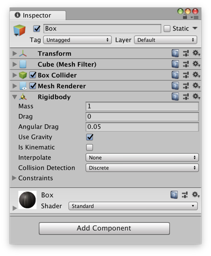 Create a Unity cube called “Box” and assign its material to be the “Box” material: