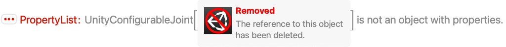 A UnityConfigurableJoint cannot be accessed after deletion: