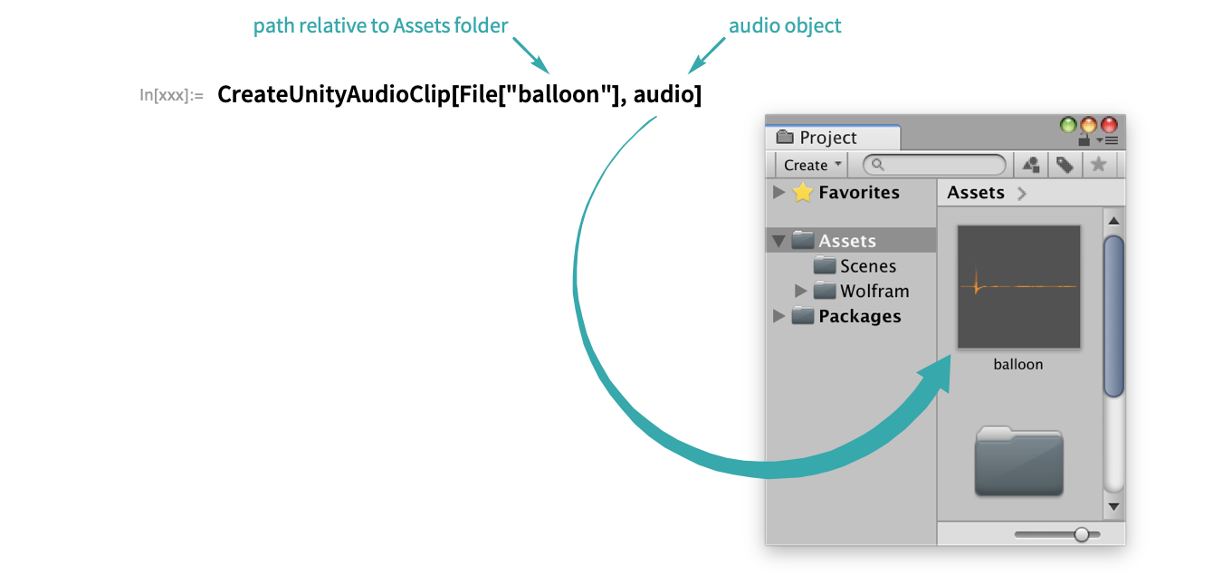 Export an audio objecet as an audio clip and save it in the Assets folder: