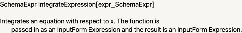 The following example demonstrates using Wolfram Language expressions to communicate mathematical data. The service returns an expression wrapped in a head of SchemaExpr. This head is used to identify the following data as an expression.