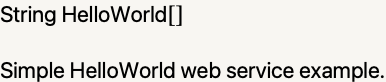 Each usage message contains a function signature that may be used to call the function. For instance, HelloWorld does not require any parameters and returns a string.