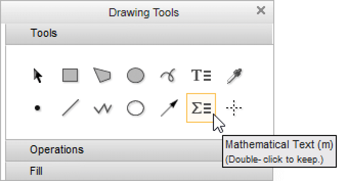 You can use the math tool to add mathematical notation to a graphic. The math tool gives the proper spacing for mathematical typesetting, automatically italicizes variables, and lets you type built-up fractions, raised powers, square roots, and so on. With the math tool selected, you can click a graphic and then enter mathematical notation: