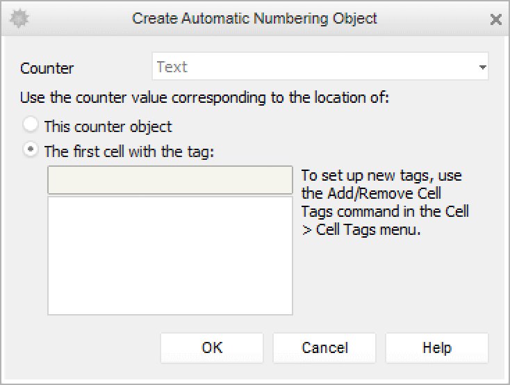 In the dialog box that appears, select Text from the Counter menu and click OK: