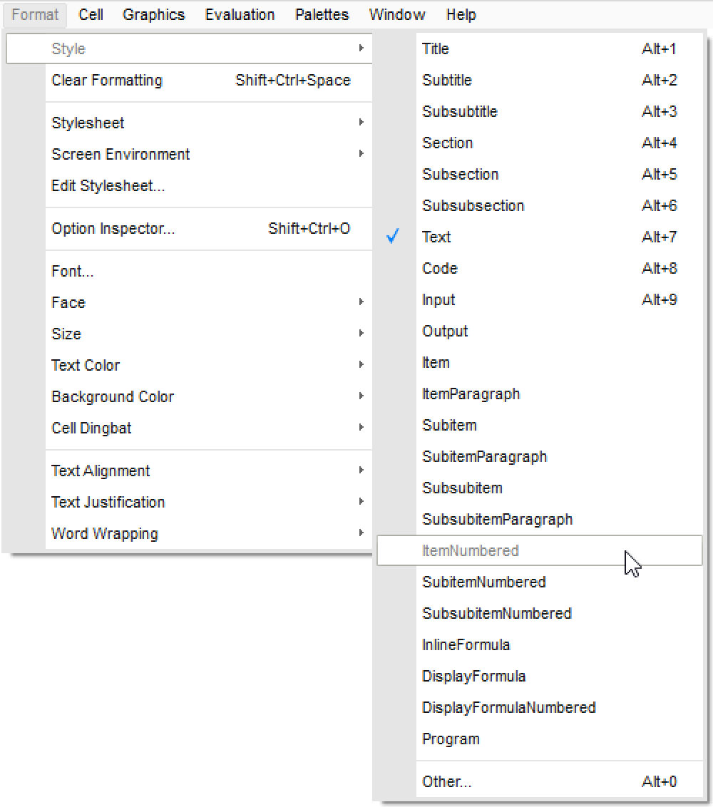 Next, choose Format ▶ Style ▶ ItemNumbered to apply the style: