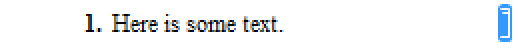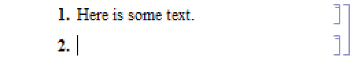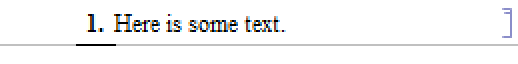 An automatic numbering object is inserted at the beginning of the text. As you can see in this screen shot, it is inserted flush with the rest of the text. You can type in additional spaces or punctuation as desired:
