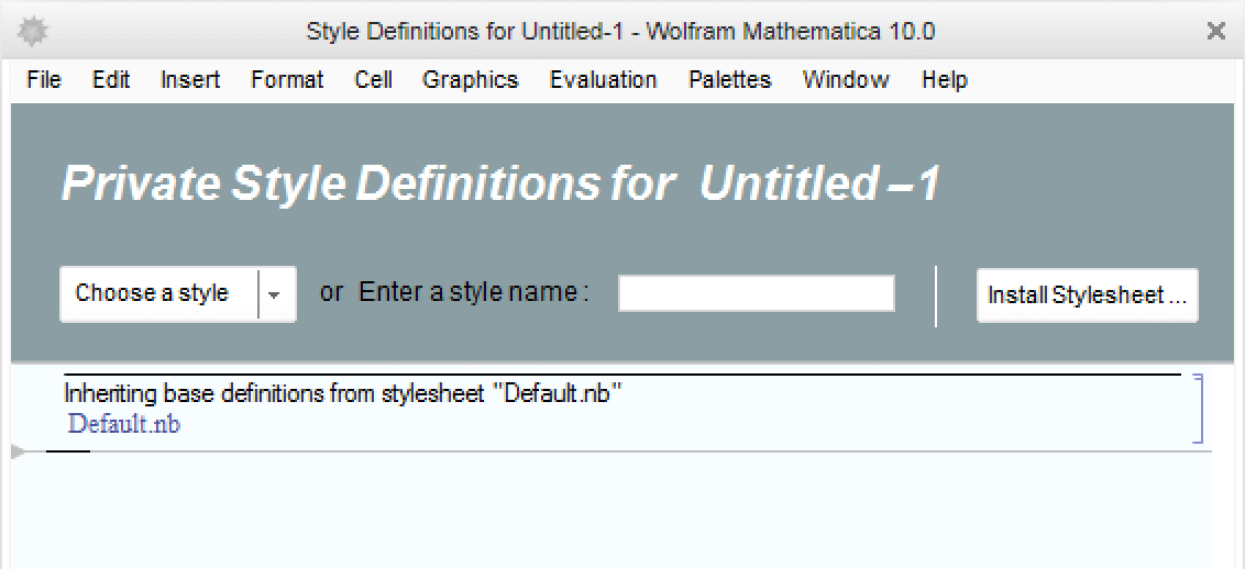 Stylesheets define the appearance and behavior of notebooks and their content. Every document created by the document interface includes a reference to a stylesheet, and the process is simple for creating a new style or making changes to an existing style via the Format menu.
