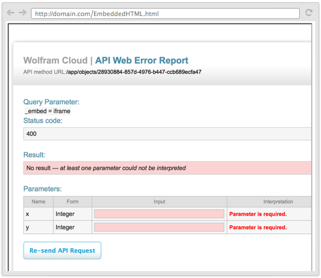 Adding this code to an HTML document and viewing it will give a form for filling in the parameters "x" and "y":