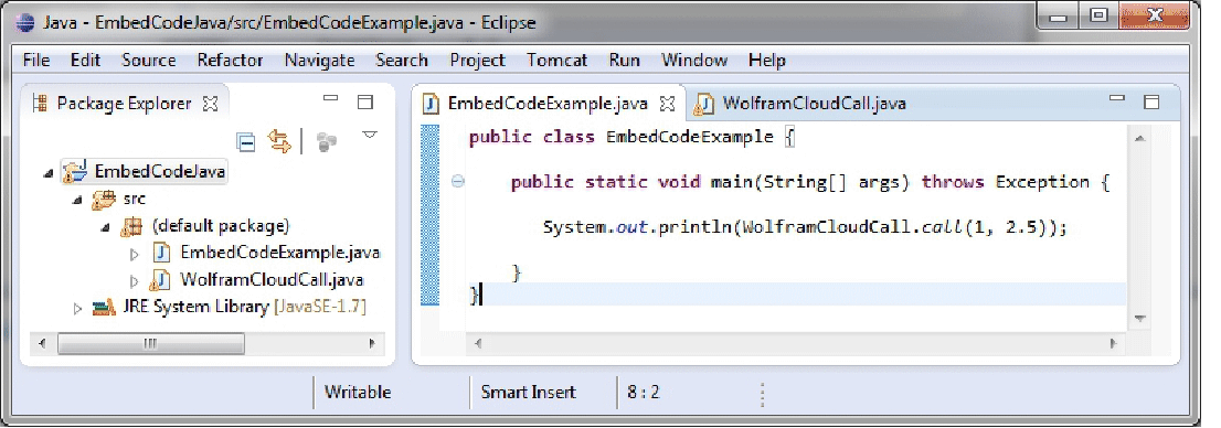 For strongly typed languages like Java, you need to add the option ExternalTypeSignature. ExternalTypeSignature is a list of two things: argument types and return types. The argument types parameter can often be deduced automatically, but you will need to specify the return type parameter. In the case of the EmbedCode above, it is "double". Set Automatic to use the default behavior for the argument types. These values are strings in the native type names of the destination language.