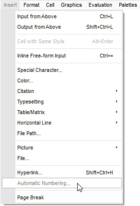 To add automatic numbering to the Section cells, place your cursor at the beginning of the Section cell you created earlier and select Insert ▶ Automatic Numbering:
