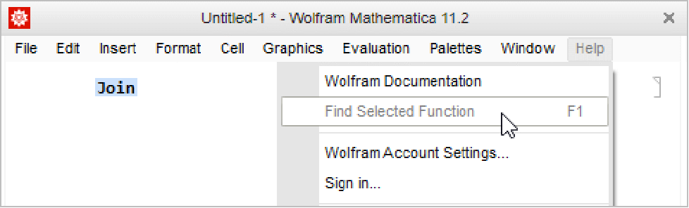 You can also do this with the keyboard shortcut that is listed next to Find Selected Function. In either case, you will be taken directly to the function page for the function that you have highlighted. Using the keyboard shortcut is a convenient way to access function pages while you are working in a notebook.