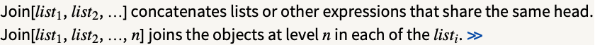 Another way to access information about functions from within a notebook is to evaluate the function with a question mark preceding it. You get the usage message that is at the top of the function page. You can click >> to open the full function page: