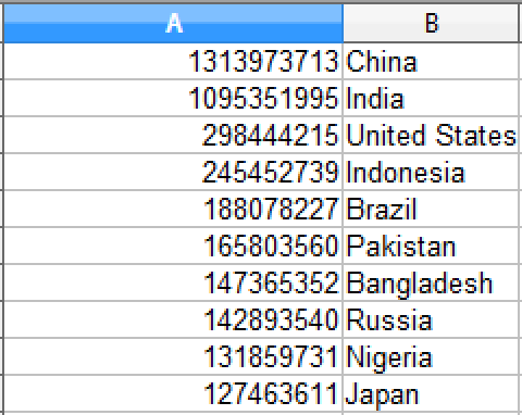 The spreadsheet "population.xls" is included in the Wolfram Language documentation folder ExampleData: