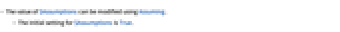 Wolfram Language. 2003. "$Assumptions." Wolfram Language & System Documentation Center. Wolfram Research. https://reference.wolfram.com/language/ref/$Assumptions.html.