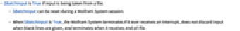 - When $BatchInput is True, the Wolfram System terminates if it ever receives an interrupt, does not discard input when blank lines are given, and terminates when it receives end‐of‐file.