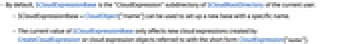 - The current value of $CloudExpressionBase only affects new cloud expressions created by CreateCloudExpression or cloud expression objects referred to with the short form CloudExpression["name"].