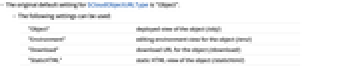 "Object" deployed view of the object (/obj/) "Environment" editing environment view for the object (/env/) "Download" download URL for the object (/download/) "StaticHTML" static HTML view of the object (/statichtml/)