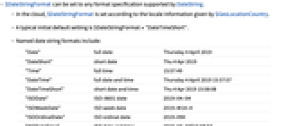 - In the cloud, $DateStringFormat is set according to the locale information given by $GeoLocationCountry.