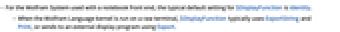 - When the Wolfram Language kernel is run on a raw terminal, $DisplayFunction typically uses ExportString and Print, or sends to an external display program using Export.