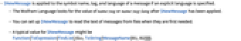 - The Wolfram Language looks for the value of name::tag or name::tag::lang after $NewMessage has been applied.