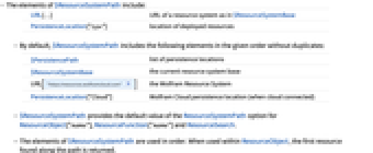 URL[…] URL of a resource system as in $ResourceSystemBase PersistenceLocation["type"] location of deployed resources - By default, $ResourceSystemPath includes the following elements in the given order without duplicates: