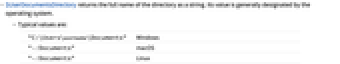 - $UserDocumentsDirectory returns the full name of the directory as a string. Its value is generally designated by the operating system.