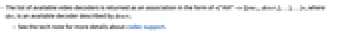 - The list of available video decoders is returned as an association in the form of <|"AVI"->{{enc1,descr1},…},…|>, where deci is an available decoder described by descri.