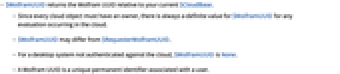 gives the Wolfram UUID of a currently logged-in user, or the user who owns a cloud object containing the code used for the current evaluation.