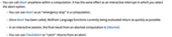 - Once Abort has been called, Wolfram Language functions currently being evaluated return as quickly as possible.