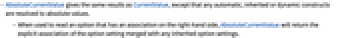 - When used to read an option that has an association on the right-hand side, AbsoluteCurrentValue will return the explicit association of the option setting merged with any inherited option settings.