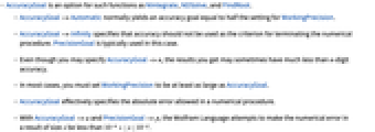 - AccuracyGoal is an option for such functions as NIntegrate, NDSolve, and FindRoot.