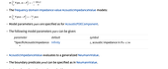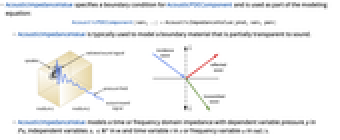 - AcousticImpedanceValue specifies a boundary condition for AcousticPDEComponent and is used as part of the modeling equation: