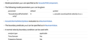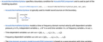 - AcousticNormalVelocityValue specifies a boundary condition for AcousticPDEComponent and is used as part of the modeling equation: