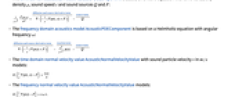 - AcousticNormalVelocityValue models a time or frequency domain normal velocity with dependent variable pressure