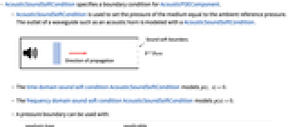 - AcousticSoundSoftCondition is used to set the pressure of the medium equal to the ambient reference pressure. The outlet of a waveguide such as an acoustic horn is modeled with a AcousticSoundSoftCondition.