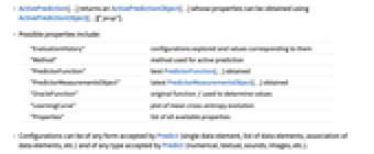 - ActivePrediction[…] returns an ActivePredictionObject[…] whose properties can be obtained using ActivePredictionObject[…]["prop"].