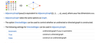 - The option DirectedEdges (with possible values Automatic, True, or False) may be used to control whether an undirected or directed graph is constructed. By default, AdjacencyGraph returns an undirected graph if the input matrix is symmetric and a directed graph otherwise.