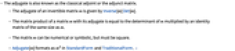 - The adjugate of an invertible matrix m is given by Inverse[m]Det[m].