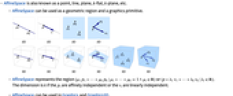 . The dimension is k if the pi are affinely independent or the vi are linearly independent. - AffineSpace can be used in Graphics and Graphics3D.