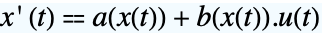 - AffineStateSpaceModel[{a,b,…},x,u,y,t] explicitly specifies the input variables u, output variables y, and independent variable t.