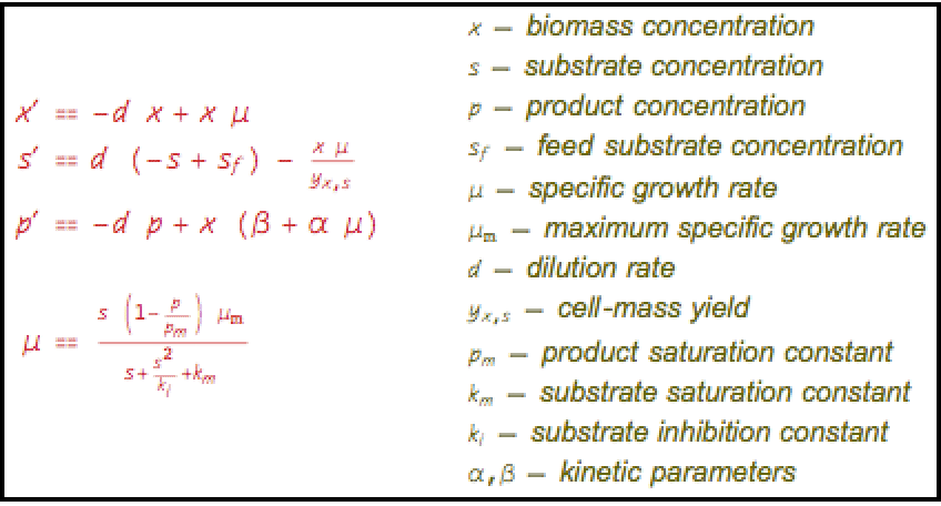 Simulate productivity starting from some initial concentration of biomass and substrate: