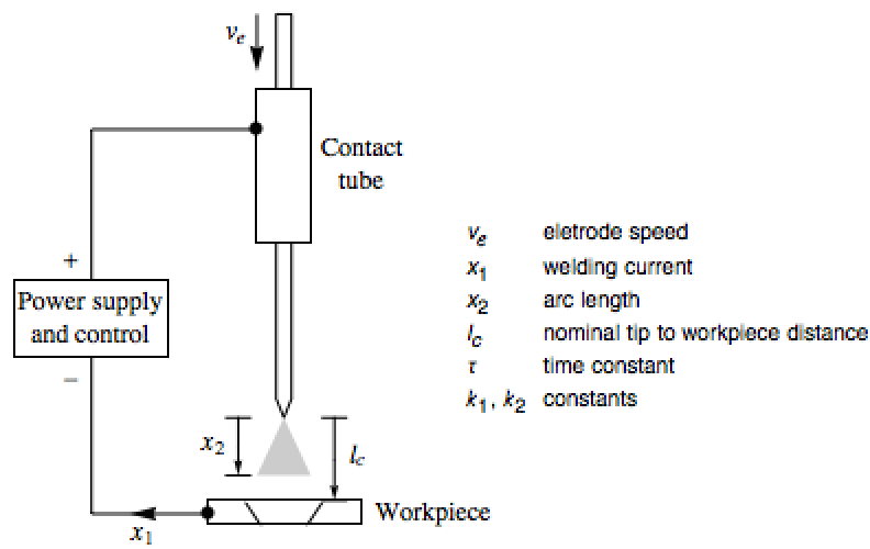 A gas metal arc welding process can be modeled as an affine system. Design a feedback law that can maintain a specified arc length: »