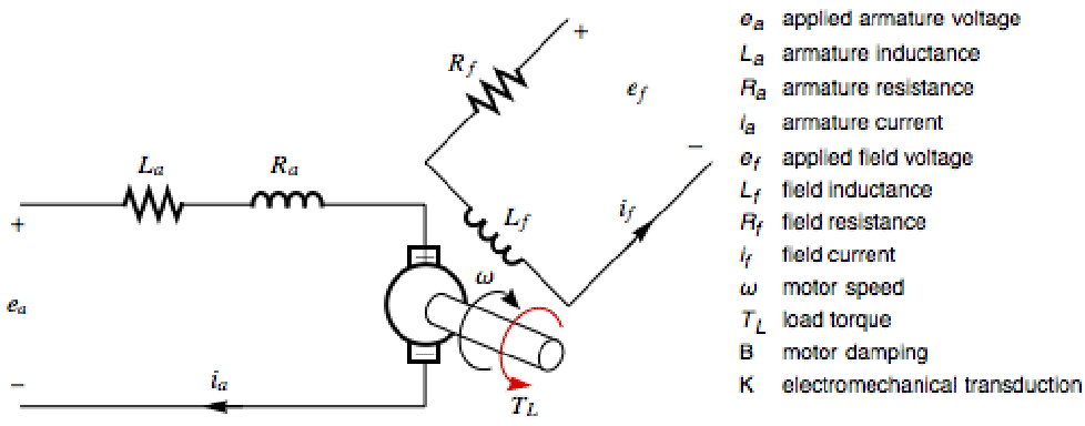 Model a separately excited DC motor with armature voltage, field voltage, and load torque as inputs, and see the effect of the damping on the poles of the linear approximation: »