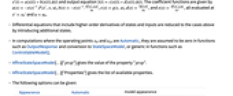 - In computations where the operating points xi0 and uj0 are Automatic, they are assumed to be zero in functions such as OutputResponse and conversion to StateSpaceModel, or generic in functions such as ControllableModelQ.