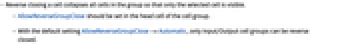 - With the default setting AllowReverseGroupClose->Automatic, only Input/Output cell groups can be reverse closed.