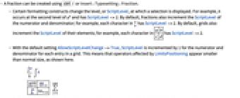 or Insert ▶ Typesetting ▶ Fraction. - Certain formatting constructs change the level, or ScriptLevel, at which a selection is displayed. For example,