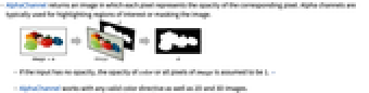 - AlphaChannel gives the matte associated with an image that locally specifies opacity. It is therefore useful for combining an image with a background where the contribution from the image and the background vary across the image.